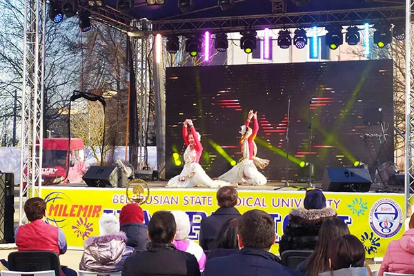 В восемнадцатый мартовский день Холи праздновали в Белорусском государственном медицинском университете. Особенно значим он для студентов из Индии и Шри-Ланки (в Белгосмедуниверситете таковых насчитывается свыше 450), которые прикасаются к культуре своей страны, даже будучи за тысячи километров от родного дома. А другим студентам-медикам, которых в БГМУ порядка 7 тысяч, в том числе около 2 тысяч иностранных граждан, представляющих более шестидесяти государств, он дает возможность больше узнать об Индии и Шри-Ланке, их традициях, колорите, национальных костюмах.