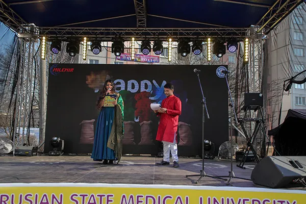 – Много-много лет назад Индия подарила нам такой красочный праздник -– Холи. Приятно констатировать, что его площадкой в Минске оказался именно Белорусский государственный медицинский университет, – подчеркнул Сергей Петрович Рубникович. – Я хочу пожелать нашим студентам стать замечательными врачами в стенах БГМУ. Надеюсь, что даже через годы они будут с трепетом вспоминать и этот праздник, и время учебы в Беларуси. Крепкого вам здоровья, успехов во всем, а также мира, согласия и взаимопонимания. И чтобы мы как можно чаще встречались на таких замечательных мероприятиях.