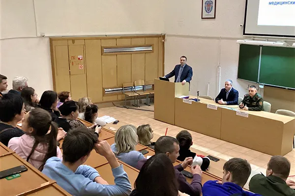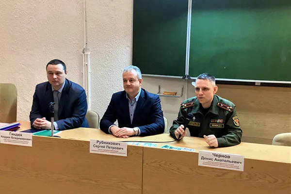 Об особенностях обучения в институте и в Белгосмедуниверситете, условиях жизни и быта курсантов, правилах оформления и подачи документов при поступлении, профотборе, денежном, вещевом и иных видах довольствия, положенных военнослужащим (а курсанты после принятия Военной присяги по завершении курса начальной профессиональной подготовки получают этот статус), увольнениях из расположения военмеда, распределении, перспективах карьерного и профессионального роста, льготах для поступающих и многом-многом другом собравшимся рассказывали ректор, член-корреспондент Национальной академии наук Беларуси, доктор медицинских наук, профессор Сергей Петрович Рубникович, начальник института, полковник медицинской службы Денис Анатольевич Чернов, заместитель начальника военно-медицинского института – начальник военно-медицинского факультета, полковник медицинской службы Дмитрий Вадимович Николаев, ответственный секретарь приемной комиссии БГМУ, кандидат медицинских наук, доцент Андрей Владимирович Гиндюк. Была возможность у потенциальных курсантов пообщаться и с уже состоявшимися защитниками Отечества, которые на данный момент учатся на разных курсах.