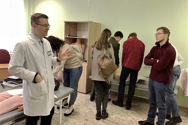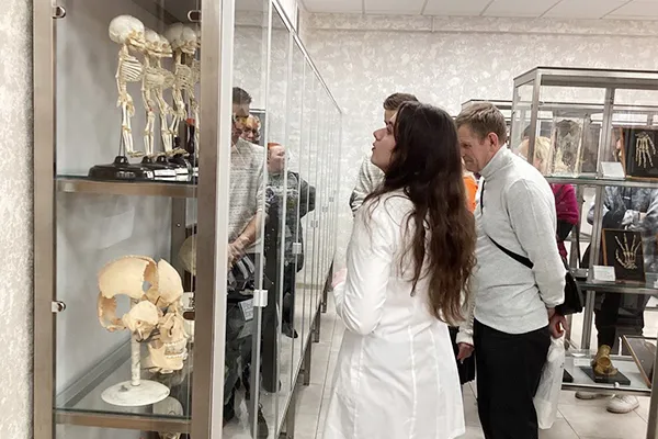 Об интересе к данному военному учебному заведению свидетельствуют и дни открытых дверей, которые проходят при довольно большом стечении абитуриентов и их родителей. Вот и в восемнадцатый февральский день в шестой аудитории главного корпуса ведущего медицинского университета Беларуси яблоку негде было упасть. В сравнении с прошлыми годами в рамках данного мероприятия была предусмотрена не только экскурсия в анатомический музей, но и в симуляционно-аттестационный центр (забегая вперед, следует заметить, что он произвел не меньшее впечатление, чем музей).