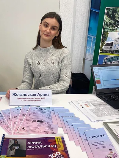 5. Ариной Жогальской, провизором-рецептаром аптеки № 109 ТП РУП «Белфармация», выпускницей БГМУ 2022 года – проект «Чеки 2.0». Не каждый магазин оснащен необходимым оборудованием, а также до конца не понятно, каким образом потребитель будет получать электронный чек и где он может с ним ознакомиться. Для этого предложена программа «Чеки 2.0» для сбора и хранения чеков в электронном формате. Для чего разрабатывается общая база, доступ к которой каждый пользователь может получить при помощи: карты клиента «Чеки 2.0» или по индивидуальному штрих-коду потребителя; через приложение «Чеки 2.0» по QR-коду непосредственно на кассе при совершении покупки; персонального ID номера «Чеки 2.0»; карты магазина; номера телефона, электронной почты, платежной карты. Далее с помощью смартфона или компьютера пользователь входит в приложение и просматривает чеки. Электронные чеки имеют такую же юридическую силу, как и бумажные. Более того, программа может быть оснащена инструментами для подсчета и планирования бюджета.