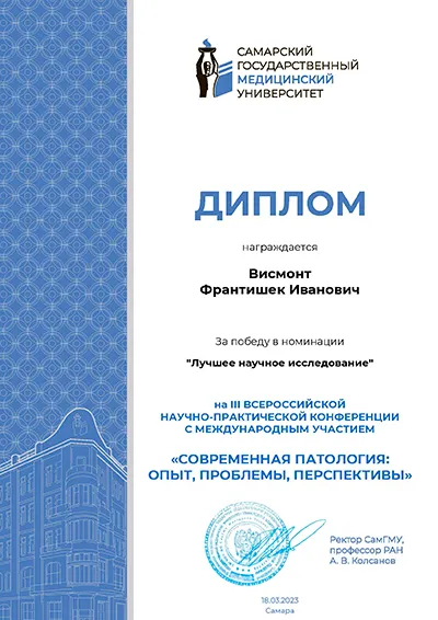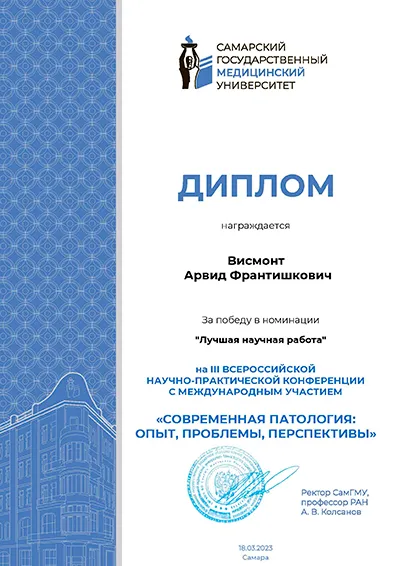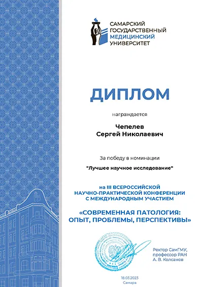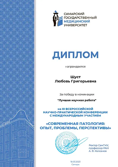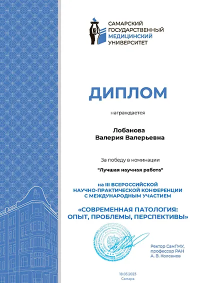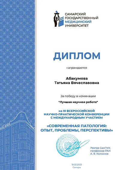 Научные работы сотрудников кафедры патологической физиологии стали победителями III Всероссийской конференции «Современная патология: опыт, проблемы, перспективы»