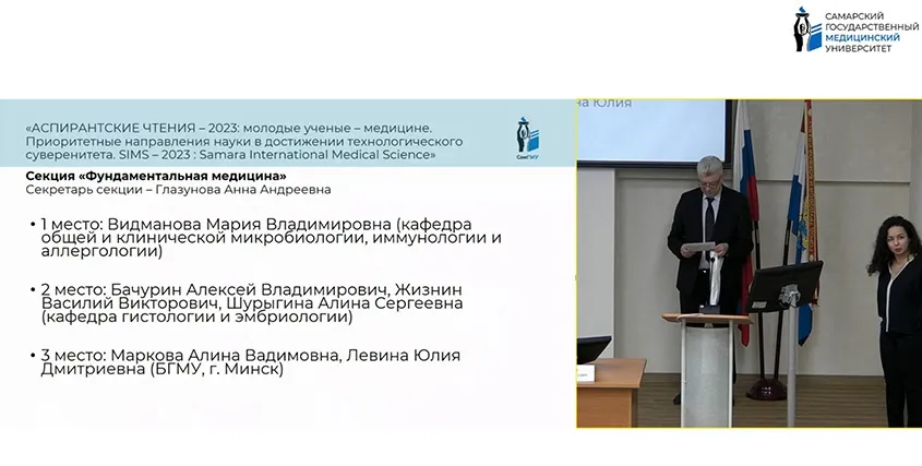 В первый день ноября в Самарском государственном медицинском университете прошла Всероссийская научно-практическая конференция с международным участием «Аспирантские чтения – 2023: молодые ученые – медицине. Приоритетные направления науки в достижении технологического суверенитета. SIMS – 2023: SAMARA INTERNATIONAL MEDICAL SCIENCE».