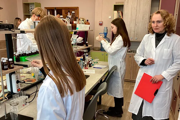 Встреча проводилась в гимназии № 2, где функционирует ресурсный центр по химии, выпускники которого являются студентами различных учреждений высшего образования, включая медицинские университеты.