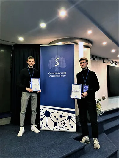 – Данная конференция послужила серьезной проверкой как нашей работы, так и медицинского кругозора в целом, – отметил автор доклада Александр Пожарицкий. – Конкуренция была серьезная: все-таки соревноваться пришлось не только со студентами, но и с аспирантами, практикующими молодыми докторами. В Сеченовском университете очень сильная база по молекулярной биологии и генетике, поэтому большинство работ секции были выполнены в данном направлении. Несколько работ вызвали у нас неподдельный интерес в силу новизны и оригинальности решения поставленной задачи. Довольно интересно было и ответить на вопросы членов президиума жюри, в который вошли заслуженные деятели медицинской науки. Вопросы были каверзные и незаурядные – настоящий «мозговой штурм», с которым мы ранее не сталкивались. Однако на все вопросы мы смогли дать грамотные объяснения, ведь не даром занимаемся этой работой уже два года, – подчеркнул Александр. – Хочется отдельно поблагодарить нашего научного руководителя – Франтишка Ивановича Висмонта, который, не жалея сил и времени, помогал нам в написании статьи и осуществлении работы в целом. Множественные вычитывания и рекомендации по выступлению помогли в подготовке доклада, с которым не стыдно выступать как дома, так и за рубежом.