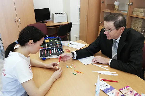 Олимпиада проходила в несколько этапов. По результатам первого этапа – ответов на тестовые вопросы – во второй тур прошли 12 студентов. На последующих этапах конкурсанты демонстрировали знание периодонтологического инструментария, практические навыки по удалению зубных отложений и подбору индивидуальных средств гигиены рта.