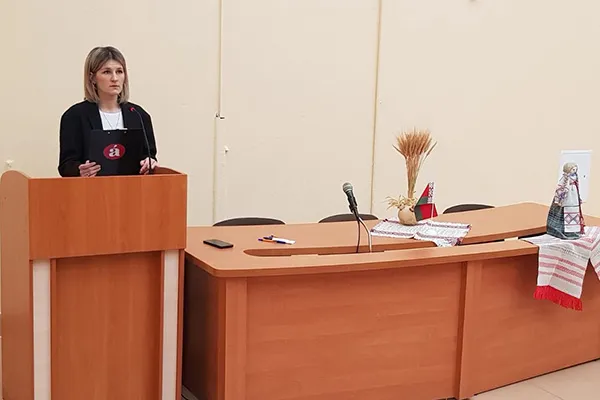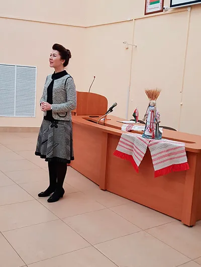 Начальнік аддзела выхаваўчай работы з моладдзю Таццяна Міхайлаўна Ярашэвіч выказала словы падзякі ў адрас кафедры беларускай і рускай моў за арганізацыю свята і выразіла самыя цёплыя пачуцці ў дачыненні да беларускай мовы і захапленне нашай Радзімай з яе багатай культурай.