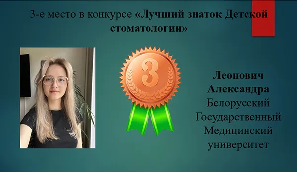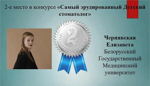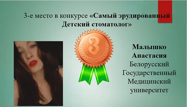 По результатам олимпиады дипломом за I место в номинации «Самый эрудированный детский стоматолог» была награждена Виктория Короткова. В этой же номинации II место присуждено Елизавете Чернявской и III место – Анастасии Малышко. Александра Леонович заняла III место в номинации «Лучший знаток детской стоматологии».