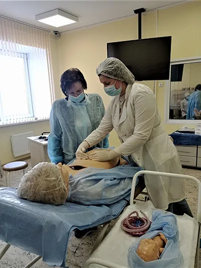 Контроль уровня владения важными практическими навыками у врачей-интернов с использованием симуляционных технологий (фантомов, тренажеров, манекенов) провела заведующий кафедрой акушерства и гинекологии, доктор медицинских наук, профессор Людмила Фёдоровна Можейко.