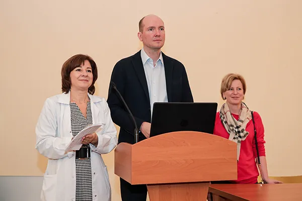 Лекция «Клиническая анатомия лица» была прочитана 11 октября профессором кафедры оперативной хирургии и топографической анатомии, заместителем директора института клинической медицины имени Н. В. Склифосовского по работе с иностранными обучающимися Первого московского государственного медицинского университета имени И. М. Сеченова Юрием Леонидовичем Васильевым для преподавателей и студентов морфологических кафедр Белорусского государственного медицинского университета. Данное мероприятие было организовано кафедрой нормальной анатомии БГМУ в рамках научно-методического семинара «Достижения и проблемы преподавания морфологических дисциплин» (он проходил с 10 по 13 октября). На него приехала также доцент кафедры оперативной хирургии и топографической анатомии, заместитель директора института клинической медицины имени Н. В. Склифосовского по учебной и клинической работе Сеченовского университета Олеся Васильевна Кытько.