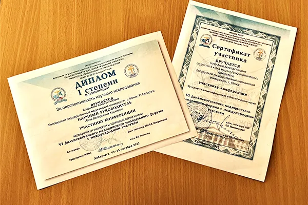 Кафедру гигиены детей и подростков БГМУ на конференции «Медицинская экология и здоровый образ жизни» представила студентка 6-го курса медико-профилактического факультета Анна Бояр с докладом «Гигиеническая оценка эффектов дневного сна на результаты предшествующего обучения», выполненным под руководством старшего преподавателя кафедры Анны Валерьевны Кушнерук. Работа получила высокую оценку и была удостоена диплома I степени в номинации «За перспективность научного исследования».