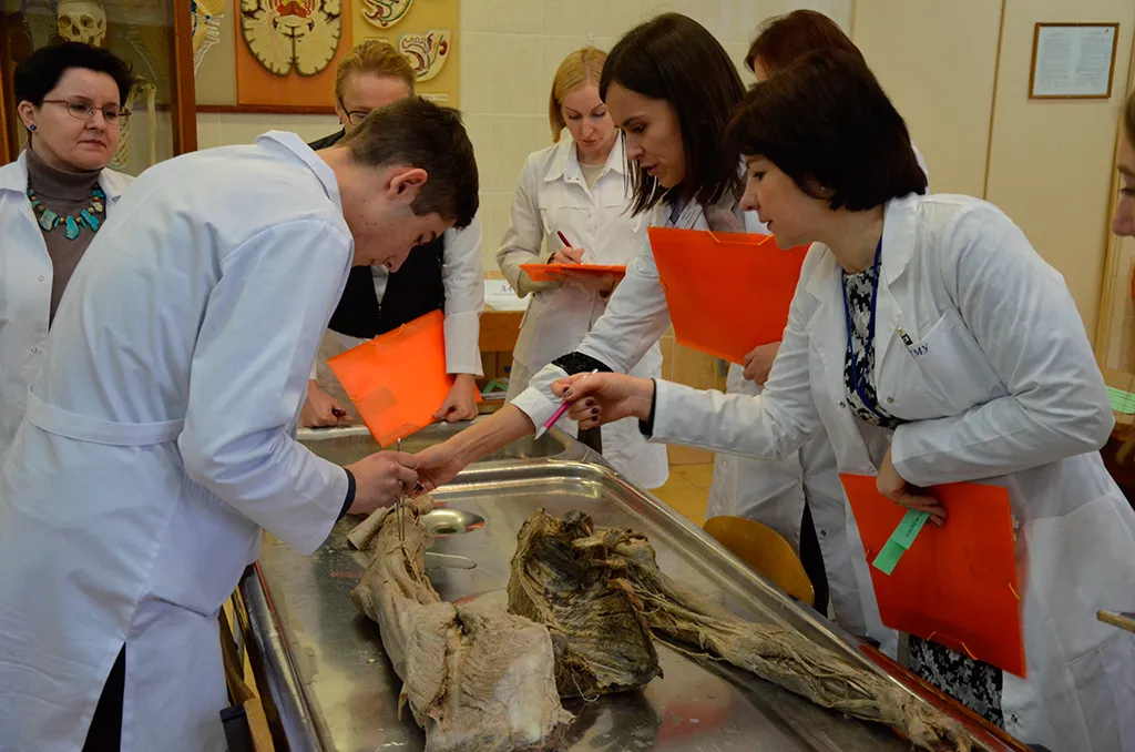 По результатам выполнения заданий «Анатомического квеста» были отобраны по три студента от каждой команды с максимальным количеством набранных баллов. Они приняли участие в третьем разделе – «Демонстрация на анатомическом материале».