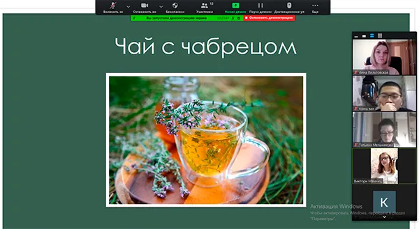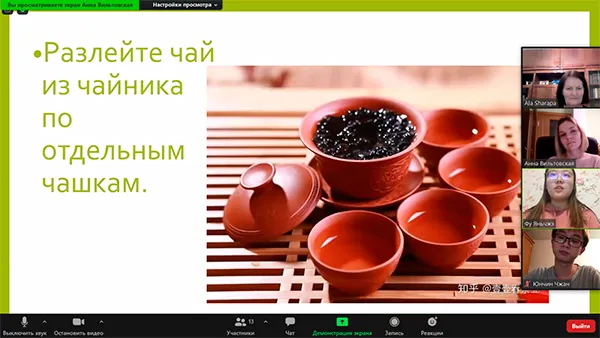 В преддверии Международного дня чая на кафедре белорусского и русского языков Белорусского государственного медицинского университета состоялось очередное заседание клуба «Интернационалист», посвященное чайным традициям разных государств мира. В связи с непростой эпидемиологической обстановкой встречу было решено провести дистанционно. На интерактивное мероприятие посредством облачной конференц-платформы ZOOM собрались студенты из Беларуси, Украины, Китая, Индии и Шри-Ланки, а также преподаватели кафедры.