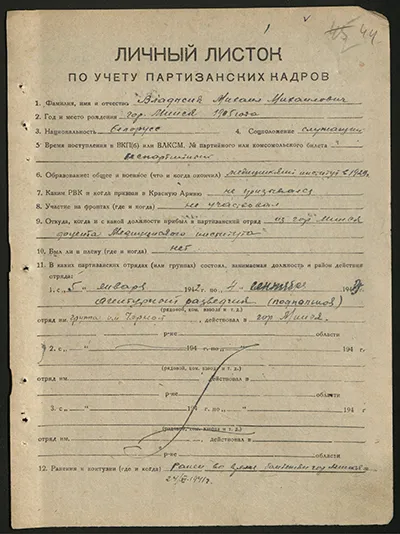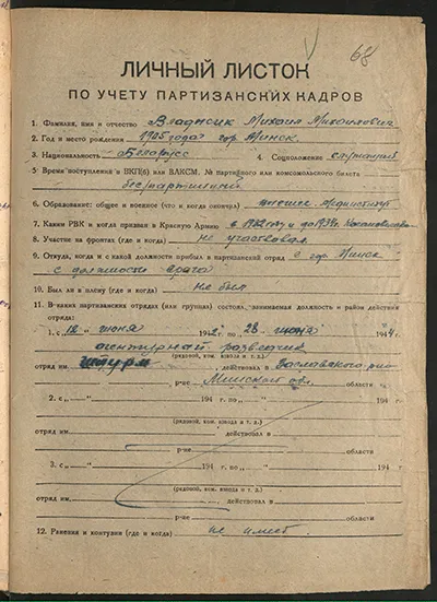 На сайте «Партизаны Беларуси» также размещен второй личный листок по учету партизанских кадров, подписанный Героем Советского Союза Марией Осиповой, которая была руководителем одной из первых подпольных организаций в оккупированномМинске.
