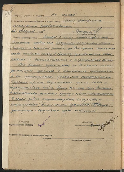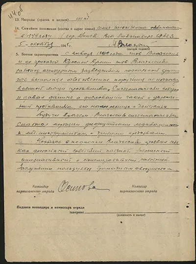 За свою проделанную работу тов. Владысик достоин награждения медалью «Партизану Отечественной войны» I ст.