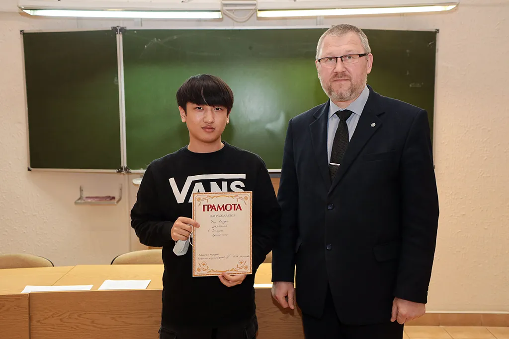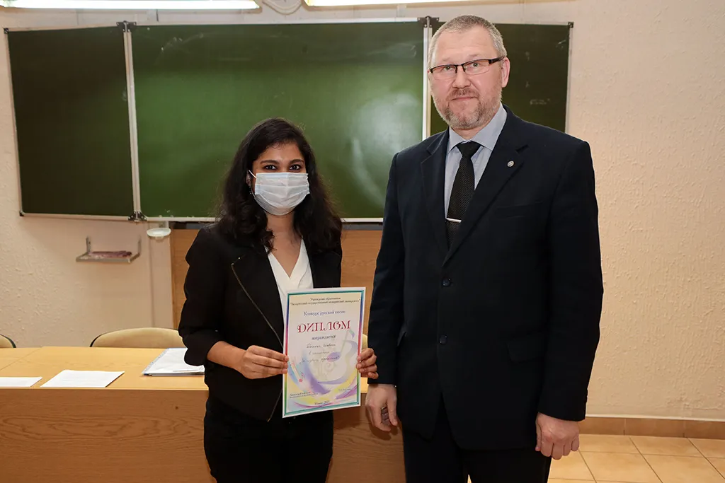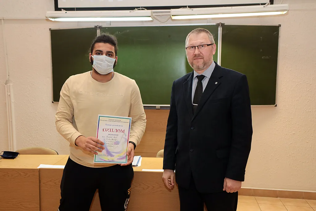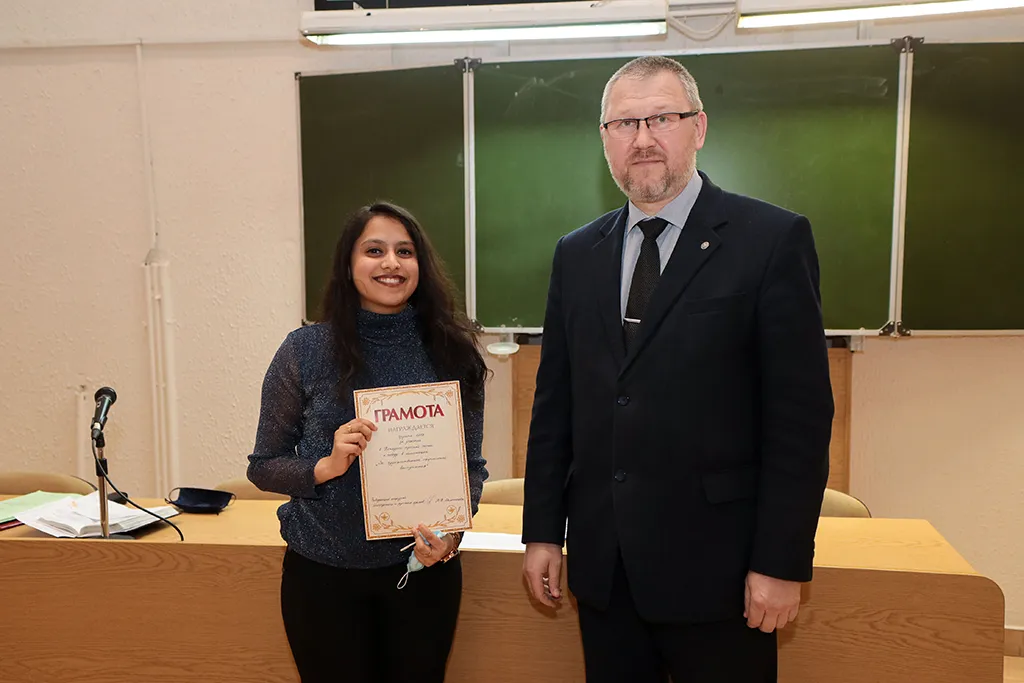 Декан медицинского факультета иностранных учащихся, кандидат медицинских наук, доцент Олег Сергеевич Ишутин наградил победителей дипломами и грамотами, поблагодарив за активное участие в жизни университета.