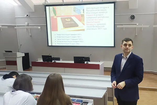 Спикер представил презентацию об истории Основного закона Республики Беларусь. В частности, особое внимание было уделено процессу принятия Конституции, изменениям и дополнениям, принятым на республиканских референдумах 24 ноября 1996 года, 17 октября 2004 года и 27 февраля 2022 года. Речь шла также о роли Всебелорусского народного собрания в жизни страны, перераспределении полномочий между органами власти, изменениях в избирательном законодательстве, а еще о новых направлениях социальной политики, об информационной безопасности, инновационной сфере. В ходе беседы акценты были сделаны на обеспечении социальной справедливости и процветания государства, сохранении суверенитета республики, национальной самобытности, исторической правды и памяти о подвиге белорусского народа в годы Великой Отечественной войны, укреплении семейных и нравственных ценностей, ответственности человека за собственное здоровье.