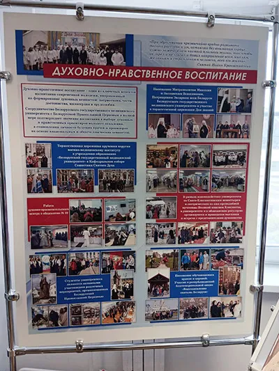 В рамках мероприятия была представлена выставка совместных проектов учреждений высшего образования и Белорусской православной церкви. Свои направления работы продемонстрировал и Белорусский государственный медицинский университет. Проректор по воспитательной работе, кандидат медицинских наук, доцент Павел Викторович Маркауцан и начальник отдела воспитательной работы с молодежью Татьяна Михайловна Ярошевич рассказали о работе в учреждении образования духовно-просветительского центра, проекте «Служение», студенческих социально-значимых волонтерских инициативах.