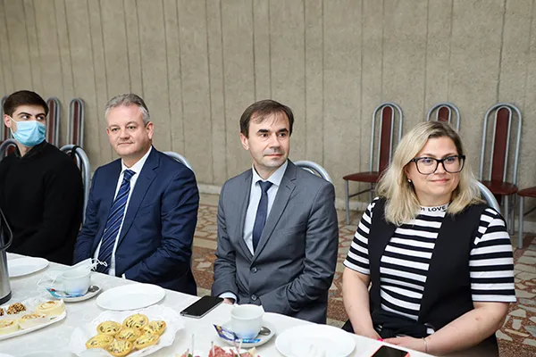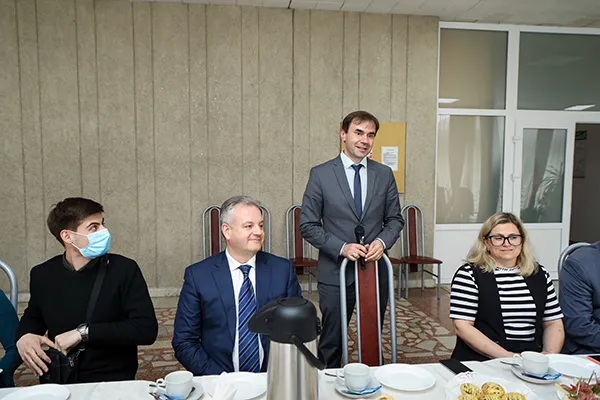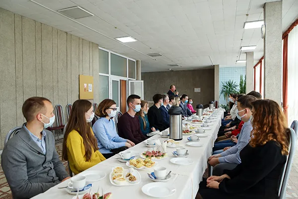 Теплую атмосферу помог создать ведущий мероприятия воспитатель общежития № 6 – Вячеслав Владимирович Грищеня. Участников мероприятия пригласили за праздничный стол, организованный первичной профсоюзной организацией студентов.