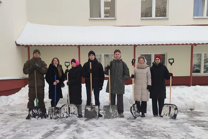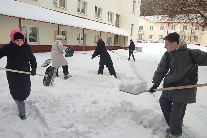 Студенты и работники университета также передали подарки и помогли убрать территорию пансионата от снега.