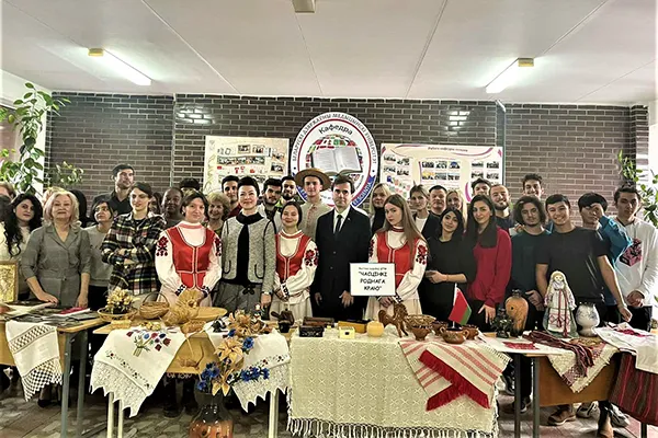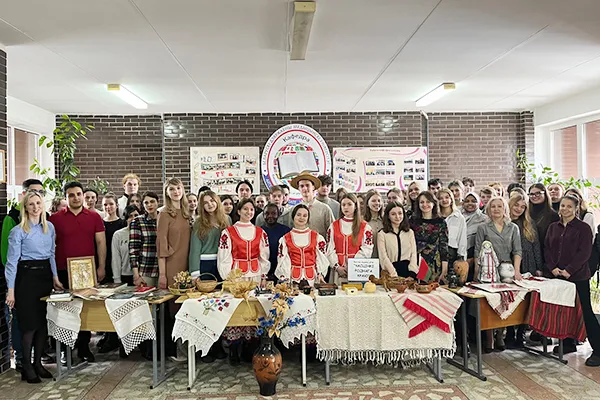 Сумесна з клубам «Інтэрнацыяналіст» на кафедры беларускай і рускай моў была арганізавана выстава вырабаў беларускага дэкаратыўна-прыкладнога мастацтва «Часцінкі роднага краю». Першымі яе наведвальнікамі сталі госці мерапрыемства, айчынныя і замежныя студэнты груп 7103, 7106, 1111, 1112, 1323-28, 6221, 6123, а таксама слухачы факультэта прафарыентацыі і давузаўскай падрыхтоўкі з груп 5102 і 5104.
