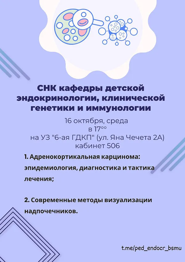 Староста кружка: Лашук Маргарита Вадимовна, студентка 5 курса, педиатрического факультета. Связаться со старостой кружка можно по электронной почте: margavad@gmail.com или pedendocrin@bsmu.by