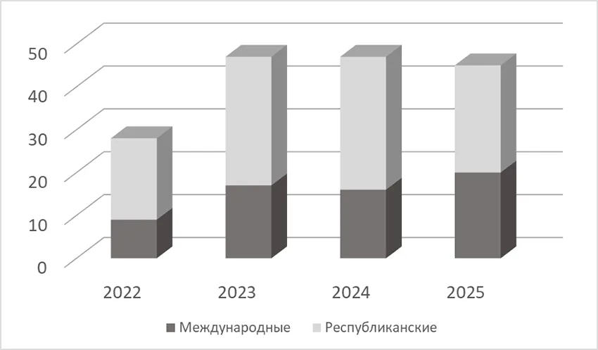 Выступления с докладами сотрудников кафедры на республиканских и на международных форумах, съездах, конференциях