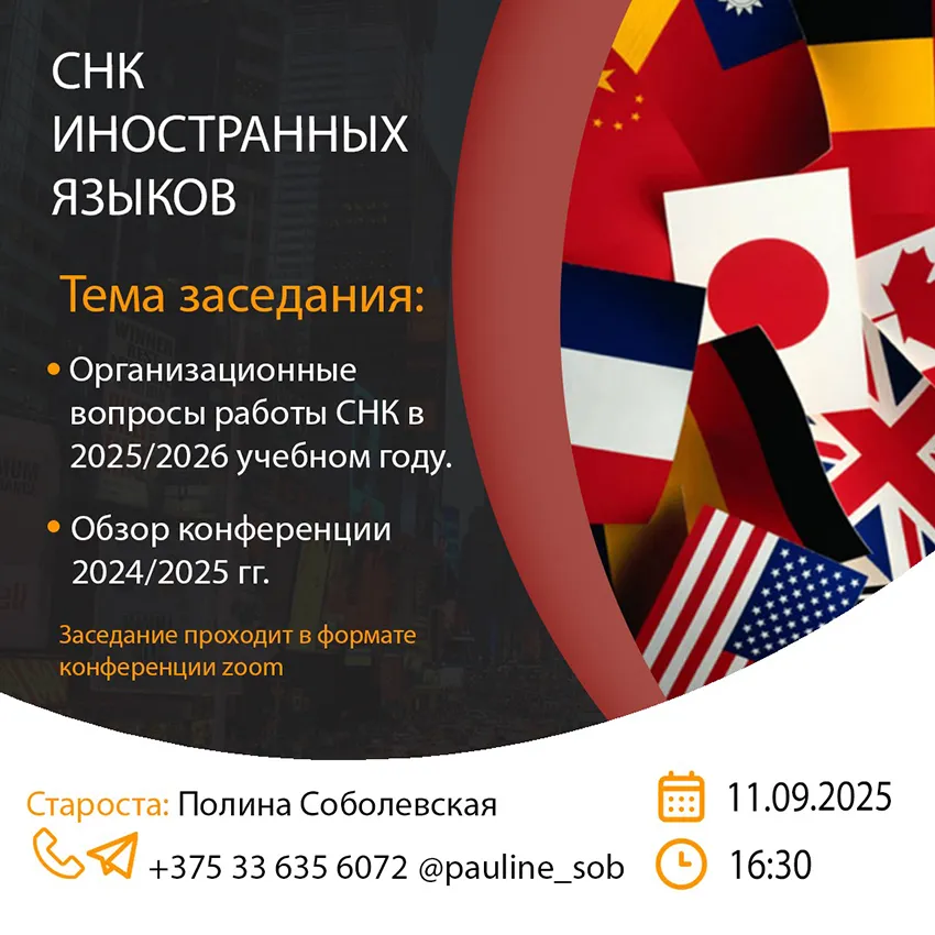 СНК по английскому языку в пределах кафедры иностранных языков БГМУ был организован в 2003 году. Руководителем кружка с 2003 по 2005 являлась преподаватель Козлова А. С. С 2006 года по настоящее время кружком руководит старший преподаватель Простотина О. В.