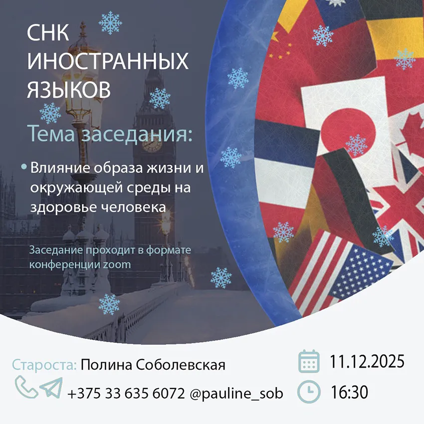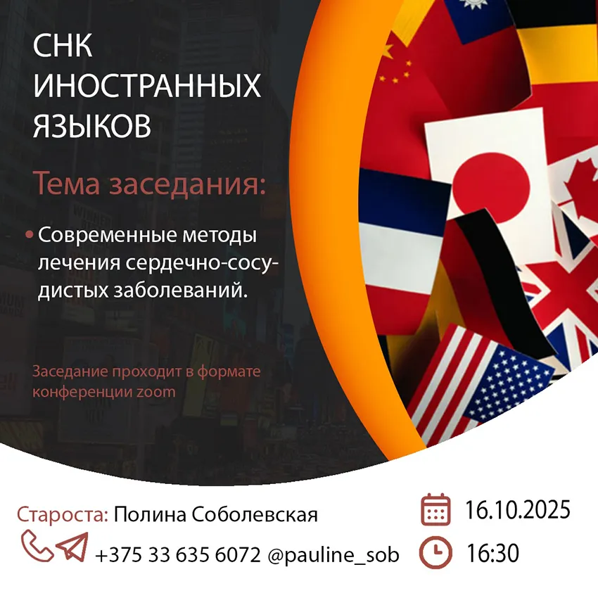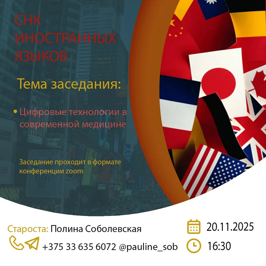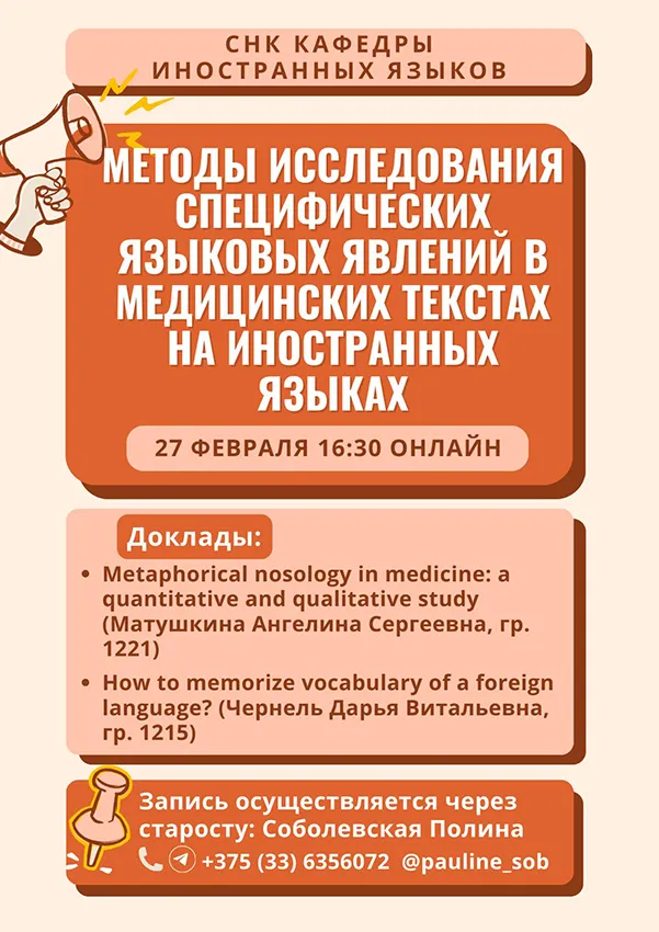 Студенческий научный кружок английского языка объединяет студентов для организации их научно-исследовательской работы в области медицинской сферы и английского языка.