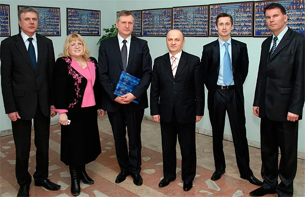 Проректор по международным связям УО БГМУ, д.м.н., профессор В.В. Руденок, заведующий кафедрой кардиологии и внутренних болезней, д.м.н., профессор Н.П. Митьковская, профессор Беннетис, ректор УО БГМУ А.В. Сикорский, заместитель главного врача УЗ «9-я городская клиническая больница г. Минска» В.А. Матюшко, первый проректор УО БГМУ, д.м.н., профессор С.В. Губкин, 2011