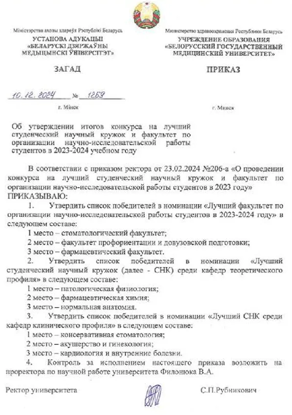 31.10.2023 в актовом зале БГМУ состоялось торжественное награждение победителей XXIX Республиканского конкурса научных работ. Всего наши кружковцы взяли 7 дипломов.