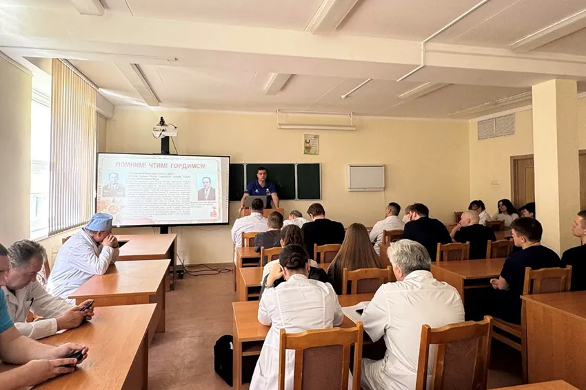 На кафедре хирургических болезней с курсом повышения квалификации и переподготовки совместно с Молодежным медицинским советом УЗ ГК БСМП 6 мая прошла конференция «Мы помним», посвященная 80-летию Победы в ВОВ. На конференции присутствовали студенты лечебного, педиатрического факультетов и медицинского факультета иностранных учащихся, сотрудники клиники. Открыл конференцию заведующий кафедрой академик НАН Беларуси Третьяк С.И. Он рассказал о своем отце Генерале армии, Герое Советского Союза Третьяке И.М, который с первых дней войны сражался за нашу Победу. Наказал молодому поколению всегда помнить героев ВОВ и быть благодарными за мирное время, беречь и защищать Беларусь.