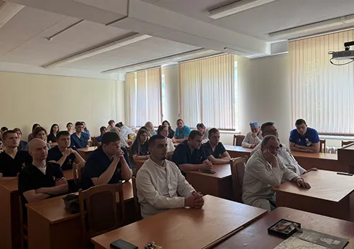 Очень внимательно и с большим интересом слушали доклады субординаторы хирурги и студенты 4 курса военно-медицинского факультета.