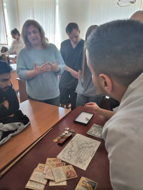 О юношеских годах и учебе архиепископа Луки рассказала в своей презентации клинический ординатор 2-го года обучения Ахмад Юля. Интересным и очень поучительным был рассказ о выборе профессии Войно-Ясенецким. У Войно-Ясенецкого была страсть к рисованию, и он одновременно с гимназией окончил Киевскую художественную школу. Но при выборе профессии он задумался, правильно ли он поступает, вправе ли он заниматься тем, что ему нравиться, но обязан заниматься тем, что полезно для страдающих людей. Войно-Ясенецкий всю свою жизнь лечил людей: 13 лет работал земским врачом, в Японскую войну заведовал хирургическим отделением в госпитале Красного Креста возле Читы, работал врачом в Симбирской губернии, врач-экстерн у профессора Дьяконова в Москве, во всех шести ссылках он лечил людей. Войно-Ясенецкий оперировал по всем разделам хирургии.