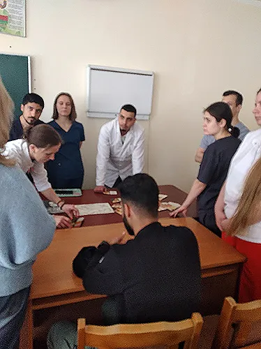 Студенты, врачи и преподаватели во время презентации.