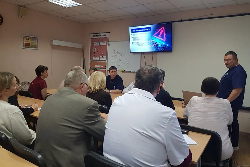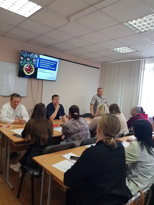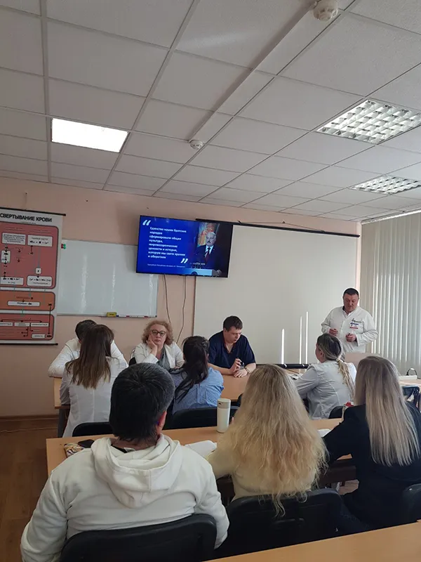 - К государственному празднику День единения народов Беларуси и России 2 апреля заведующий кафедрой клинической гематологии и трансфузиологии, кандидат медицинских наук, доцент Игорь Искров прочитал информационную лекцию для слушателей курса переподготовки №63 «Трансфузиология» и клинических ординаторов кафедры.