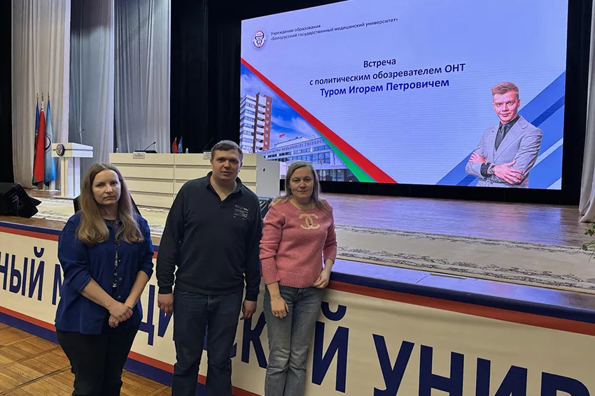 - 11 февраля 2026 года слушатели курса повышения квалификации №64 «Анемии: скрининг, мониторинг, риск-адаптированная терапия» кафедры клинической гематологии и трансфузиологии совместно со старшим преподавателем кафедры Соколовым-Воропаевым Алексеем Анатольевичем приняли участие во встрече с политическим обозревателем телеканала ОНТ Игорем Петровичем Туром.