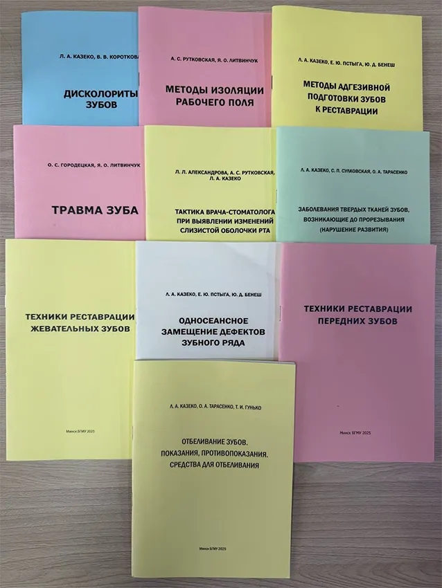 - Техники реставрации передних зубов : учебно-методическое пособие / Л.А. Казеко, Ю.Д. Бенеш, Е.Ю. Пстыга, О.С. Городецкая. – Минск : БГМУ, 2025. – 63 с.