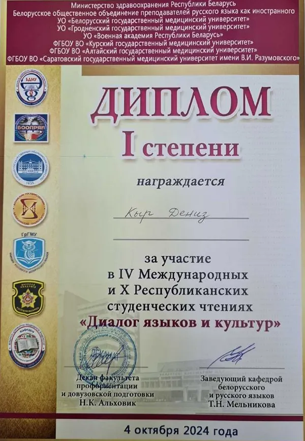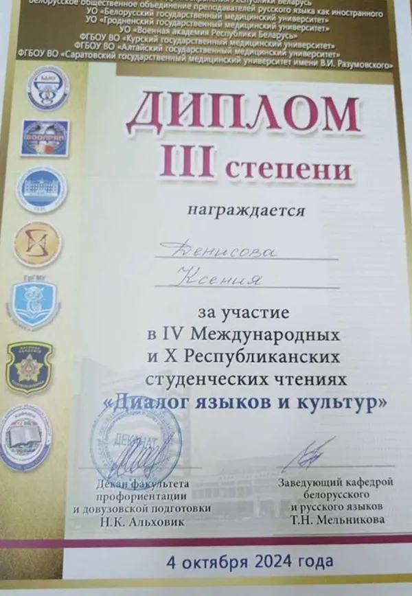 Студенты кафедры латинского языка приняли участие в IV Международных и X Республиканских чтениях «Диалог языков и культур», которые проходили на кафедре белорусского и русского языков БГМУ 04.10.2024 года.