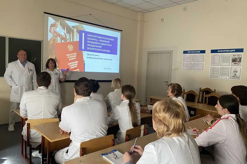 До студентов доводятся основные положения Кодекса законов о труде Республики Беларусь и морально-этического кодекса БГМУ.