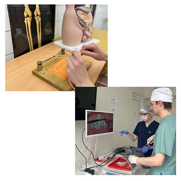 Для обеспечения клинической направленности преподавания преподаватели кафедры проводят обучающие мастер-классы по вязанию узлов и аппендэктомии.