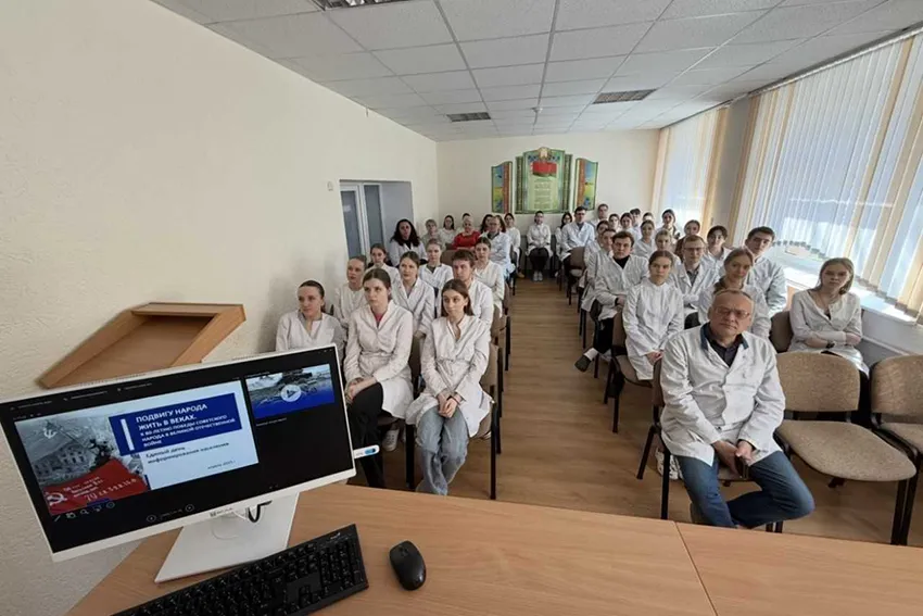 В преддверии празднования Дня Победы в Великой Отечественной войне и 80-летия освобождения Беларуси от немецко-фашистских захватчиков на кафедре пропедевтики детских болезней проведен просмотр видеофильма посвященного этим событиям и проведены информационные часы, где обсуждены: логотип 80 –летия освобождения Беларуси от немецко-фашистских захватчиков, символ Победы и 9 населенных пунктов Беларуси награжденных вымпелом «За мужество и стойкость в годы Великой Отечественной войны», согласно Указа Президента Республики Беларусь№44 от 02 февраля 2024 года (Барановичи, Дзержинск, Дятлово, Калинковичи, Любань, Оболь, Освея, Осиповичи, Чаусы).