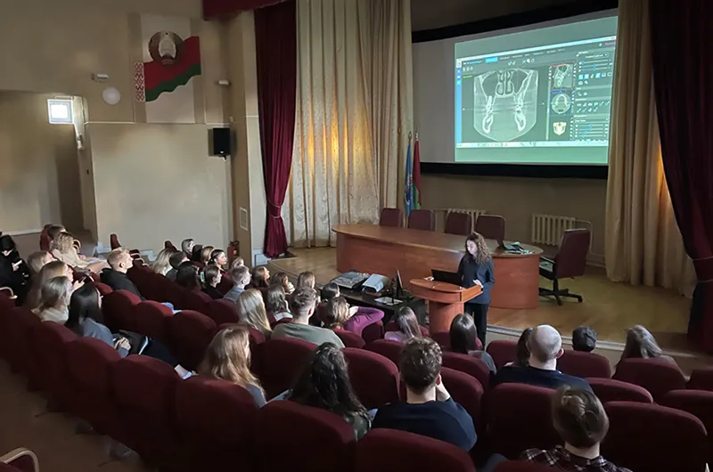 Следующее заседание было посвящено тематике лучевых методов обследования пациентов с патологией челюстно-лицевой области. Ассистент кафедры Лущик Максим Дмитриевич прочитал лекцию с практическим курсом на тему: «Основные принципы работы с конусно-лучевой компьютерной томографией: диагностика, планирование, лечение».