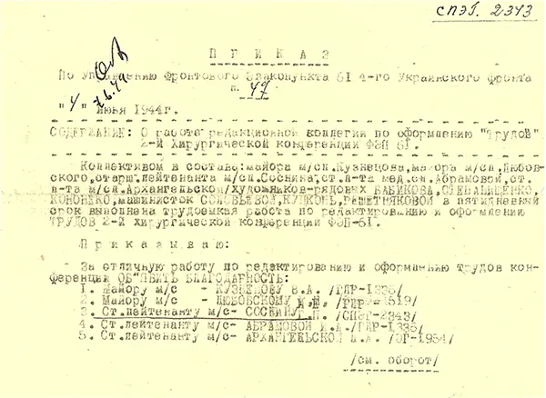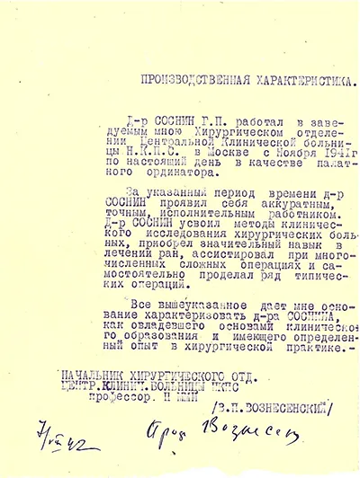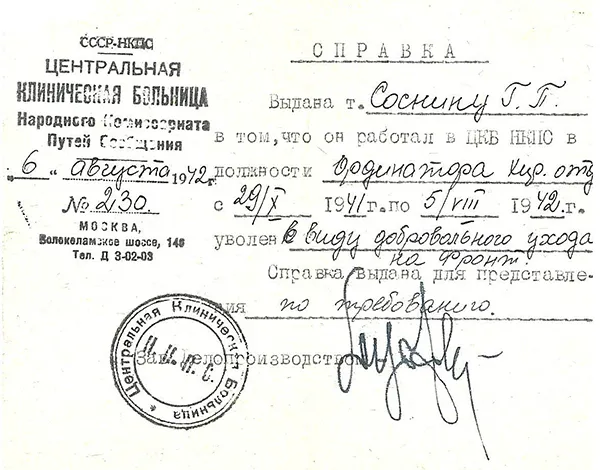 1941 г. – ординатор хирургического отделения Центральной клинической больницы Народного комиссариата путей сообщения.