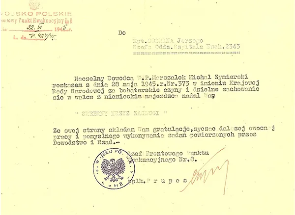 Награжден орденом Отечественной войны 2-й степени, медалями «За оборону Сталинграда», «За освобождение Варшавы», «За победу над Германией в Великой Отечественной войне 1941-1945 гг.», Крестами Заслуги 1-й и 2-й степени (Польша).