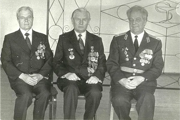 ветераны Великой Отечественной войны. Слева направо: доц. Тесевич И.Д., проф. Соснин Г.П., асс. Беляев И.Б.