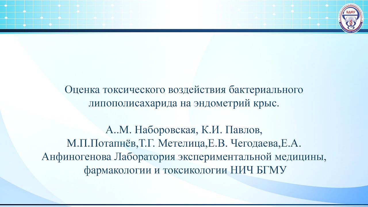Оценка токсического воздействия бактериального липополисахарида на эндометрий крыс