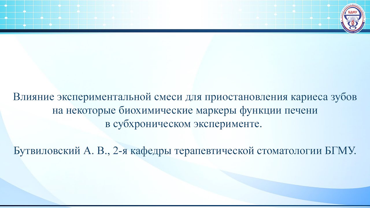 Влияние экспериментальной смеси для приостановления кариеса зубов на некоторые биохимические маркеры функции печени в субхроническом эксперименте