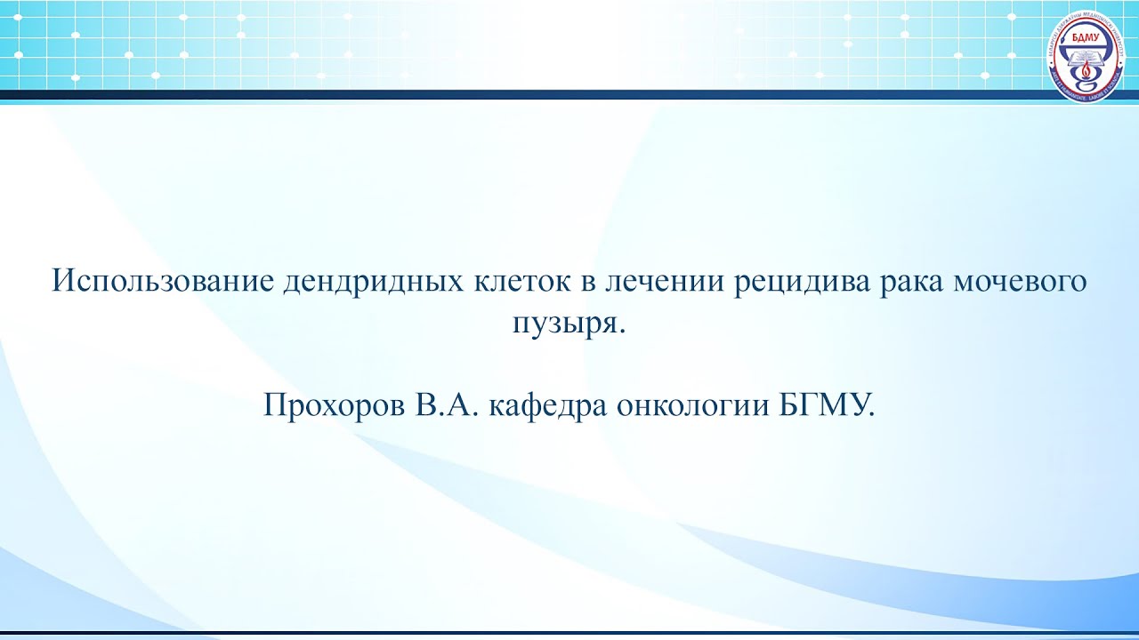 Использование дендридных клеток в лечении рецидива рака мочевого пузыря