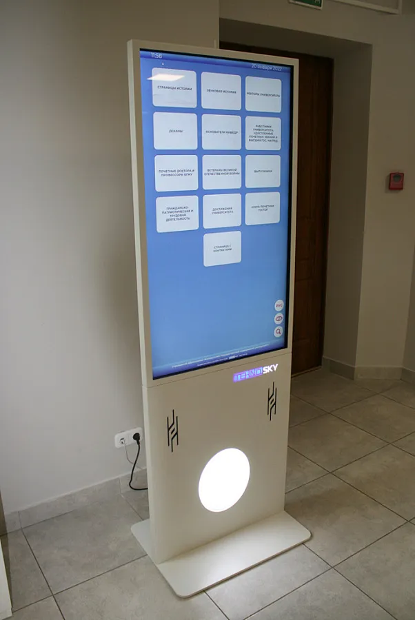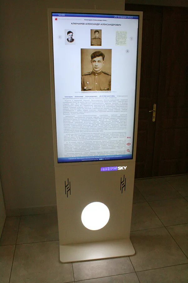 Расширяет экспозицию использование мультимедийного стенда, где представлены сведения о ветеранах Великой Отечественной войны, работниках, удостоенных почетных званий и высших государственных наград, выпускниках МГМИ/ БГМУ за 100-лет, почетных докторах БГМУ; отражены достижения университета, страницы истории, воспоминания старейших работников.